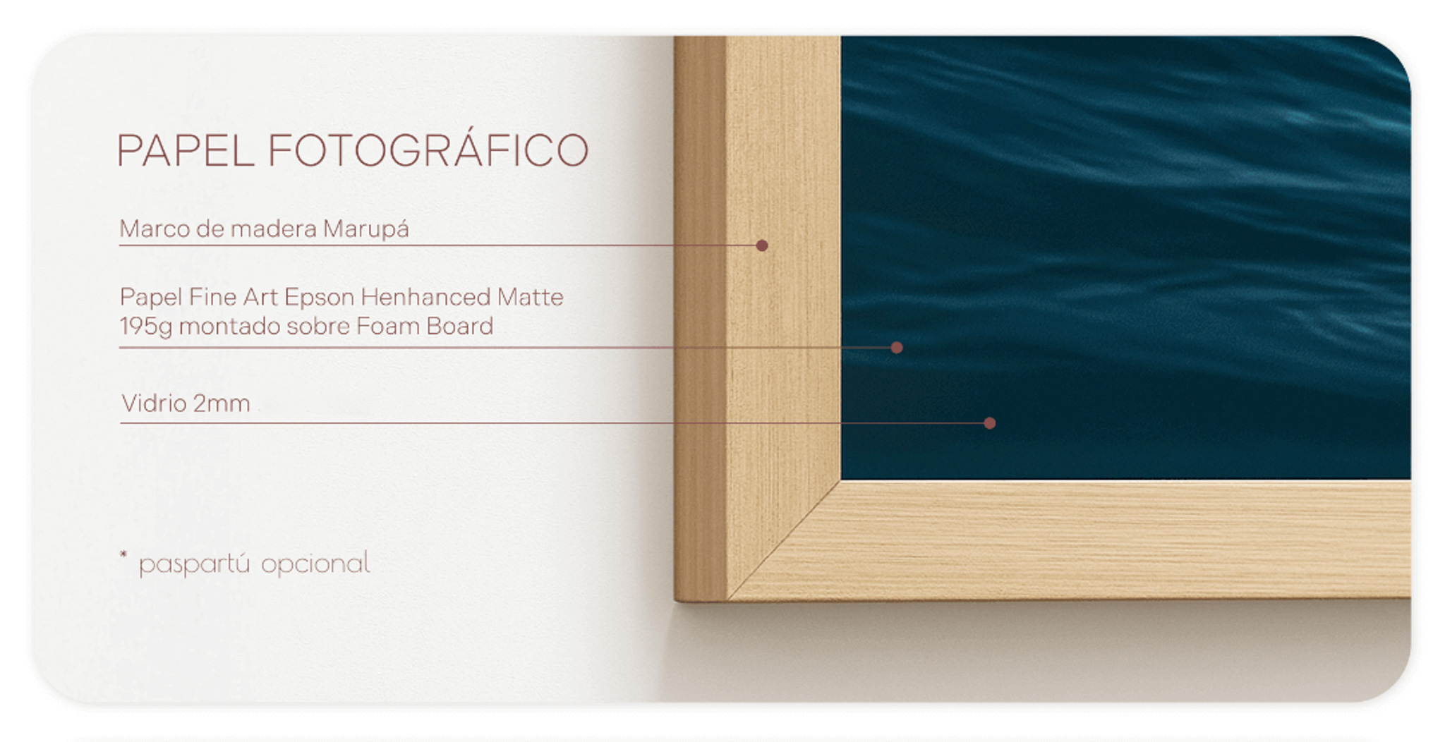 Hoy en día trabajo con el papel Fine Art Epson Enhanced Matte 195g, un papel mate de alta calidad profesional a base de celulosa.
